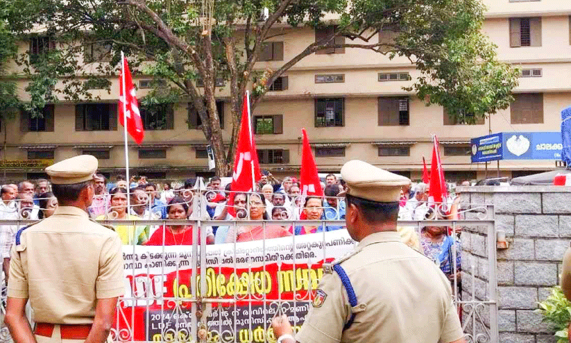 എൽ.ഡി.എഫ് പ്രതിഷേധ മാർച്ച് നഗരസഭ ഓഫിസിന് മുന്നിൽ പൊലീസ് തടഞ്ഞപ്പോൾ