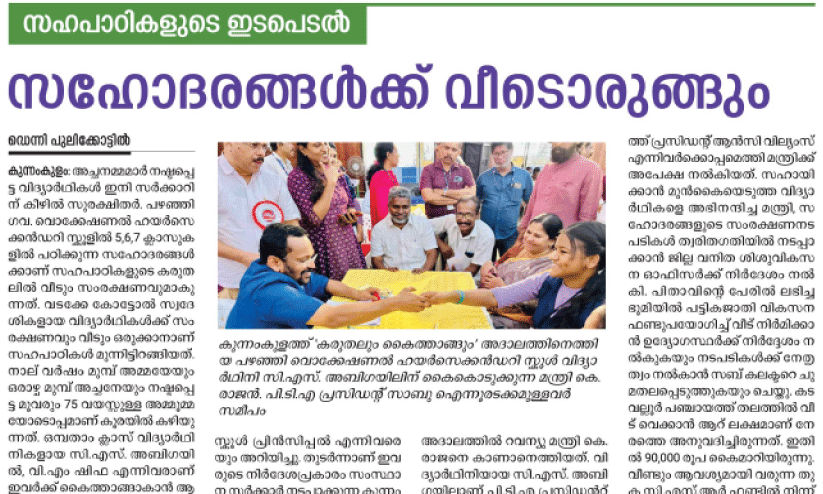 അ​നാ​ഥ​രാ​യ സ​ഹോ​ദ​ര​ങ്ങ​ൾ സ​ർ​ക്കാ​ർ ത​ണ​ലി​ലേ​ക്ക്