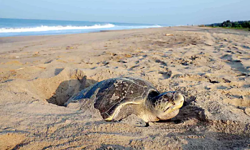 എടക്കഴിയൂർ കടൽത്തീരത്ത് മുട്ടയിടുന്ന ഒലീവ് റിഡ്ലി വിഭാഗത്തിൽപെട്ട കടലാമ